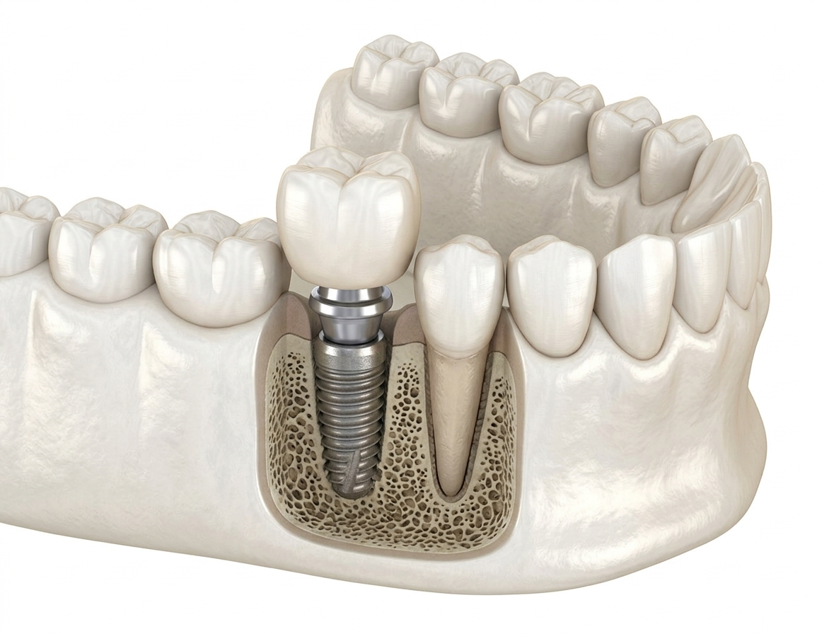 Los implantes dentales son raíces artificiales de titanio con forma de tornillo sobre las cuales podemos anclar nuevos dientes, de manera individual, por grupos o toda la arcada a la vez.